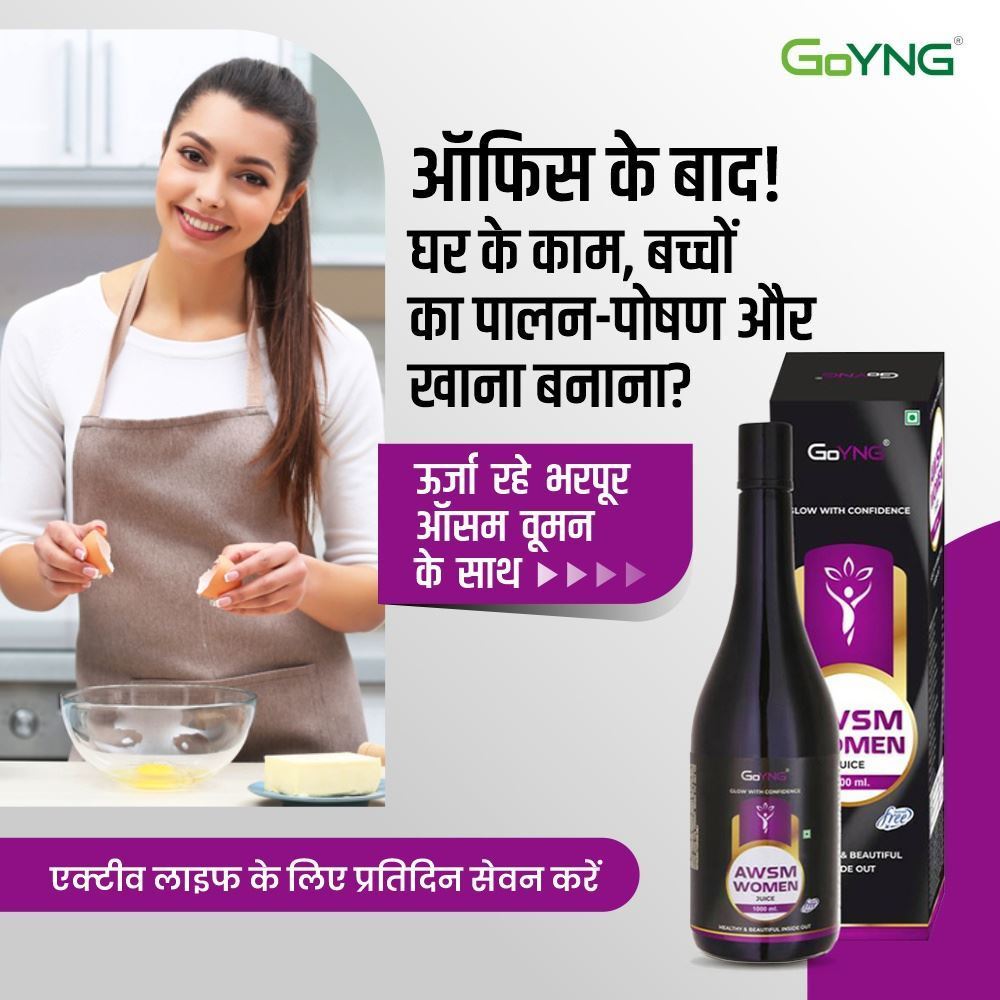 Women need fewer calories than men, but in many cases, they have higher vitamin and mineral needs. Adequate intake of calcium, iron, and folic acid are of special importance for women. Also hormones keep changing which makes them irritable, tired and weak. GoYNG Awsm Women has goodness of ayurvedic ingredients balanced in proportion for best results to keep women healthy energetic