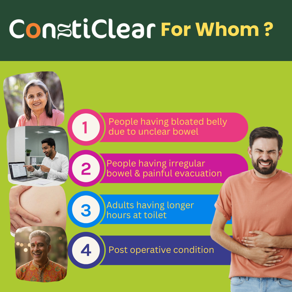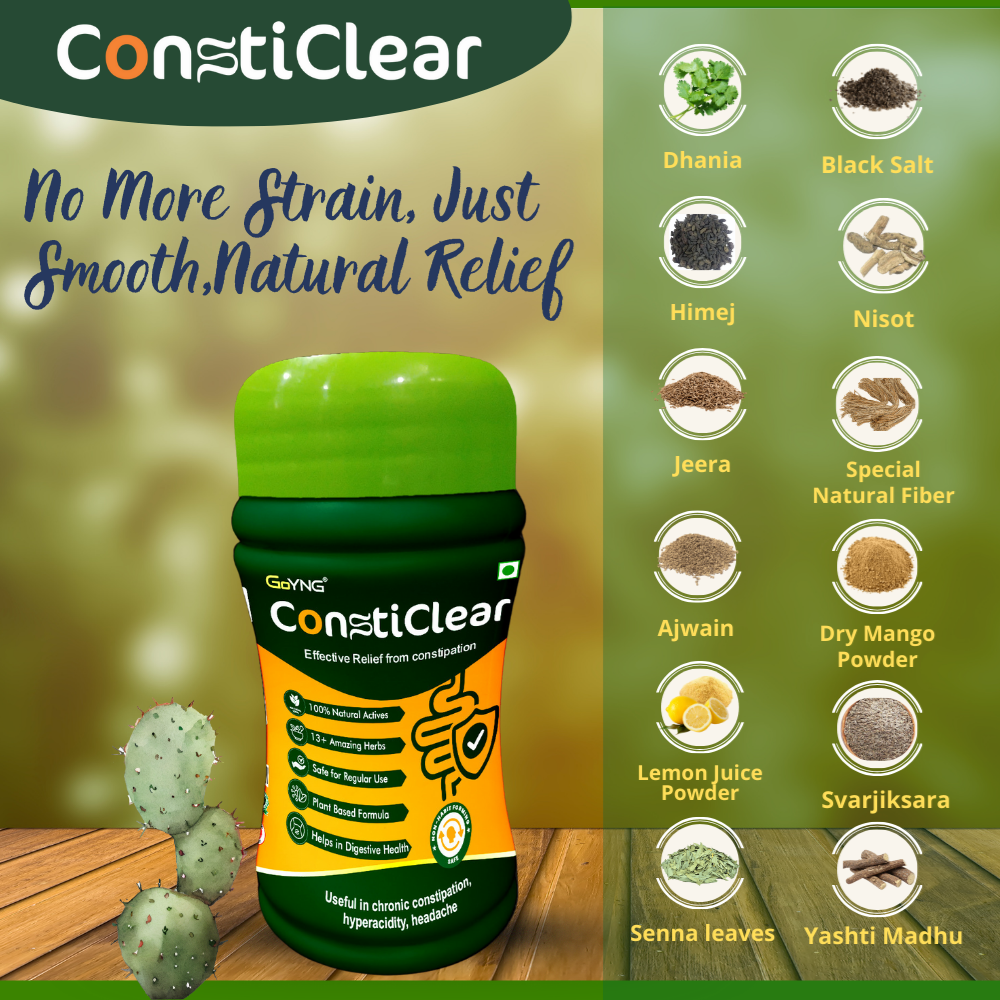 Consticlear is having  solution to clear your bowel easily, everyday. A non-habit making formula to clear bowel without harming your body. eading to bloating and discomfort.