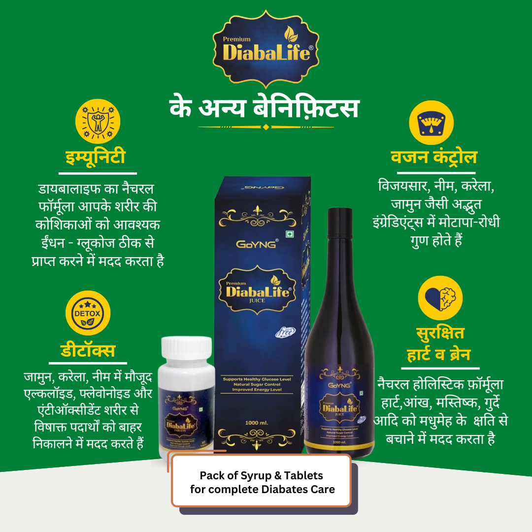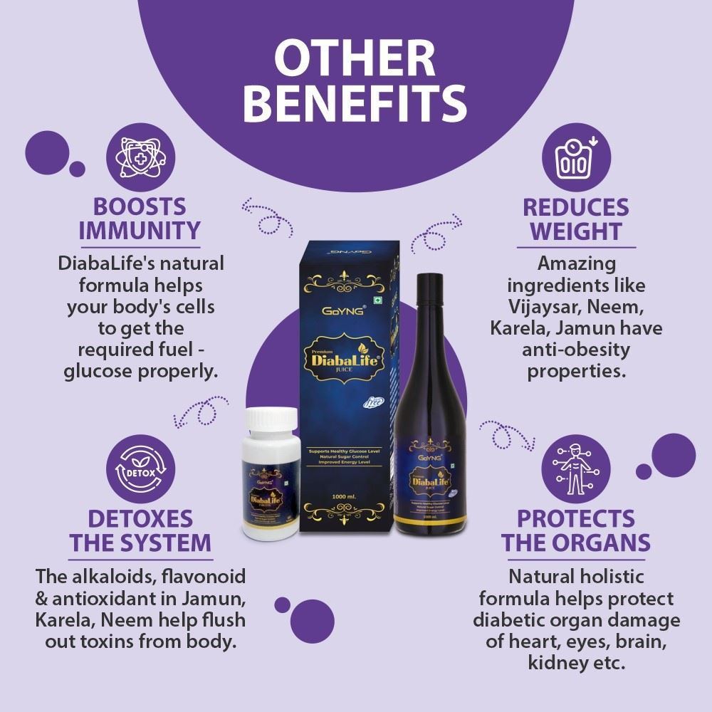 All these benefits makes the GoYNG Diabalife juice the best drink for diabetes care.