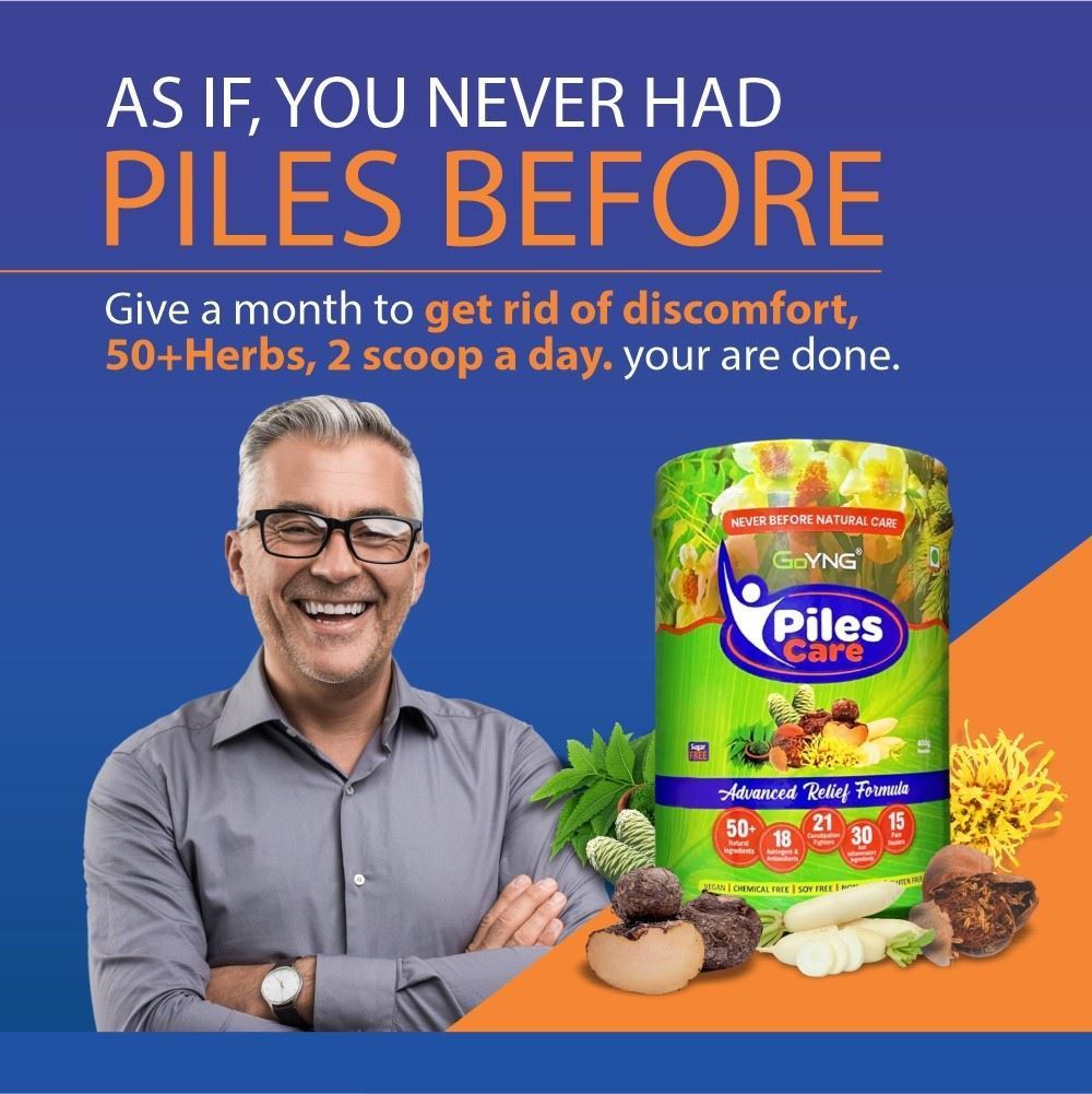 AYURVEDIC FORMULA: Goyng Piles Care is an Ayurvedic formula that uses natural herbs like Nagkesar, Jimikand, Witch hazel, and Talisapatra for effective relief from constipation, piles, piles pain, bleeding and discomfort, irregular bowel movement, burning and itching and piles swelling.
