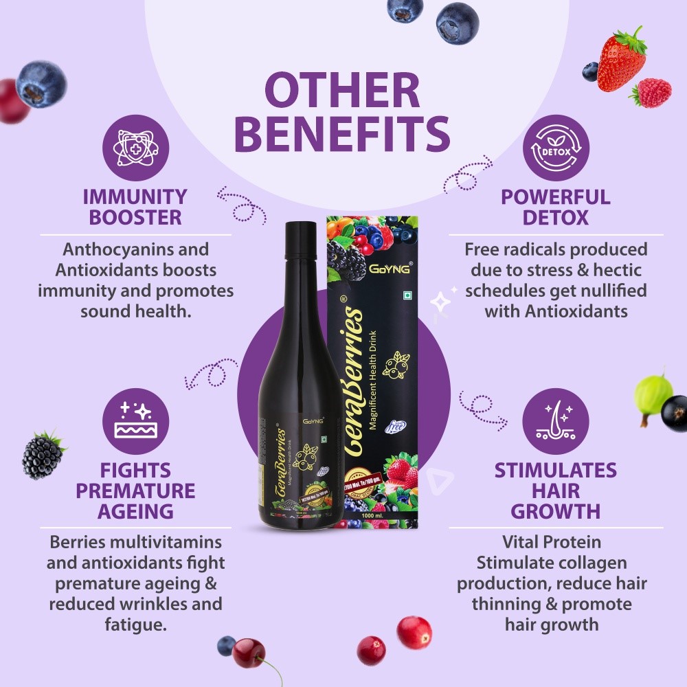 FIGHTS AGING : Berries have multivitamins and antioxidants that fight aging and reduce free radicals that damage skin, hair and organs and make you look older.
